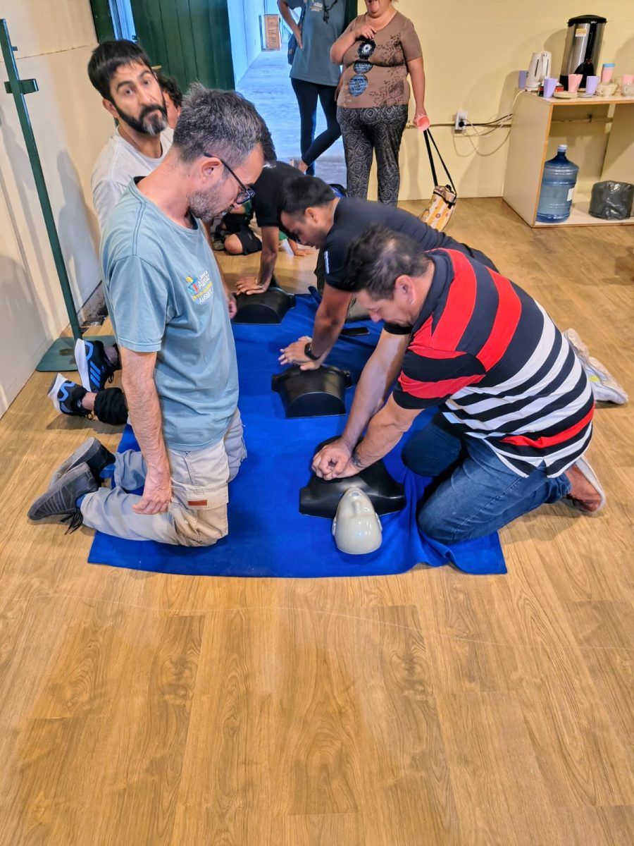 La actividad incluyó formación en reanimación cardiopulmonar (RCP), maniobras ante obstrucción de vías aéreas, uso de desfibrilador externo automático (DEA), contención de hemorragias y actuación frente a picaduras y mordeduras de animales ponzoñosos.
