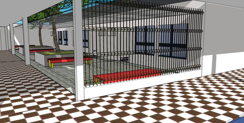El área recreativa se dividirá en dos: un patio de juegos y uno institucional; mientras que el área de gestión y apoyo contendrá una sala de Dirección, una de Secretaría y Administración, una para docentes y un gabinete psicopedagógico.