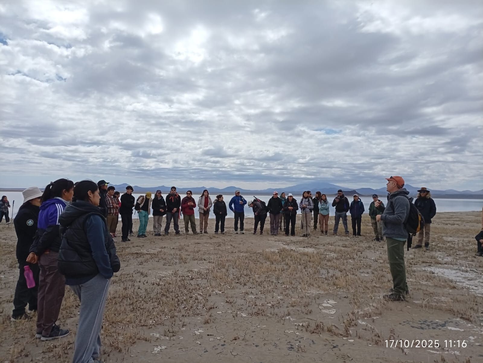 El recorrido incluyó una visita a La Playa de Llancanelo, donde el personal de la Delegación explicó las características ecológicas del humedal, su importancia en la conservación de aves acuáticas y su rol como sitio RAMSAR. Posteriormente, el grupo realizó un trekking hasta Carilahuquen, donde fueron recibidos por el propietario del puesto local, Ángel Lamas, quien brindó acceso a las instalaciones, conectividad y un espacio de descanso, gesto muy valorado por todos los participantes.
