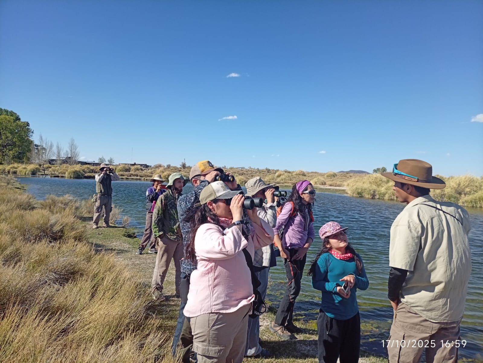 Asimismo, participaron integrantes del Club de Observadores de Aves de Malargüe, conformado por técnicos y vecinos interesados en la conservación de la biodiversidad local. El técnico Adriano Bassi guio las actividades de observación en el sector de Carilahuquen, donde se pudieron identificar flamencos, gallaretas y diversas especies de patos. Durante la experiencia, se compartieron técnicas de conteo utilizadas en el Censo Neotropical de Aves en Llancanelo, realizando una práctica de observación y registro de especies.