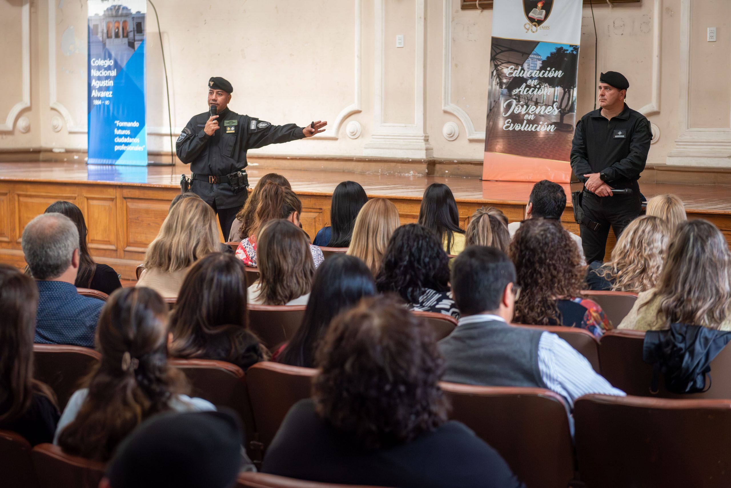 La formación fue destinada a escuelas secundarias orientadas, técnicas y de jóvenes y adultos. Fueron convocados los jefes de los diferentes grupos como GES, GRIS, Explosivos y Policía Turística, para trabajar junto a los profesionales de la educación.