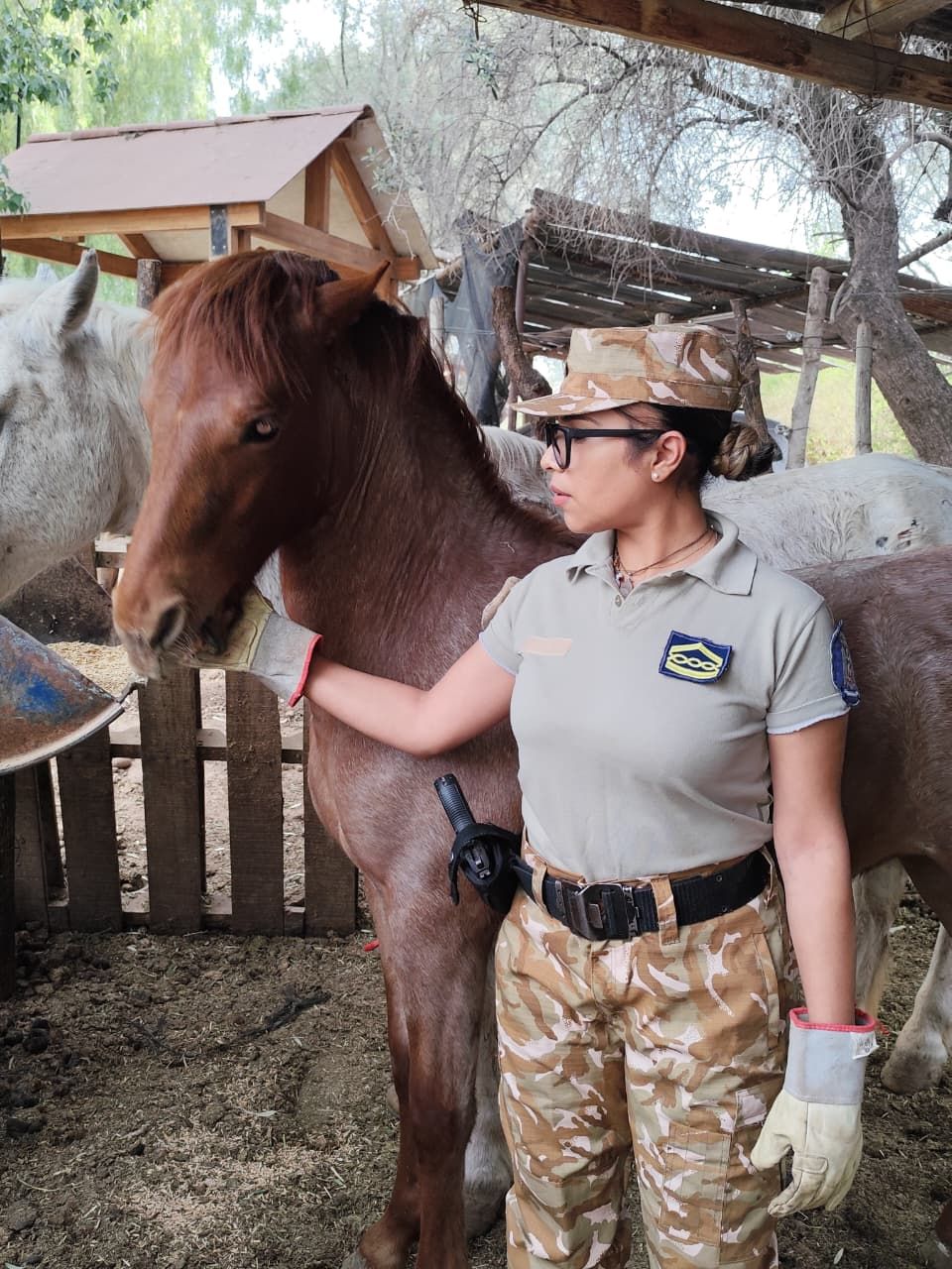 La auxiliar superior Andrea Vivares, con 18 años de servicio, forma parte de la historia viva de esta unidad. Desde sus primeros días encontró en la especialidad una vocación que combina el servicio policial con el compromiso ambiental. "Estoy orgullosa de pertenecer a esta institución y de trabajar con mis compañeros y jefes, que siempre nos acompañan. Es un trabajo especial, hermoso, porque trabajamos con animales", expresó.