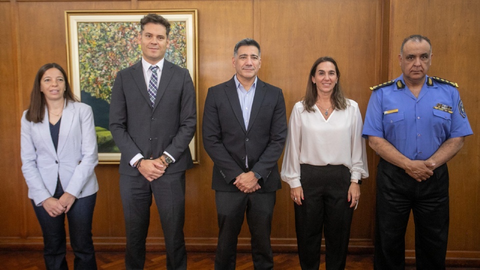 En la conferencia de prensa que se realizó este viernes participaron Marcelo Calipo, jefe de la Policía de Mendoza; Daniela García, jefa de Gabinete del Ministerio de Educación, Cultura, Infancias y DGE; Georgina Cicchitti, de la Dirección de Atención a Personas con Discapacidad; Agustín Píscopo, director del Registro Civil, y Luis Borrego, subsecretario de Transporte.