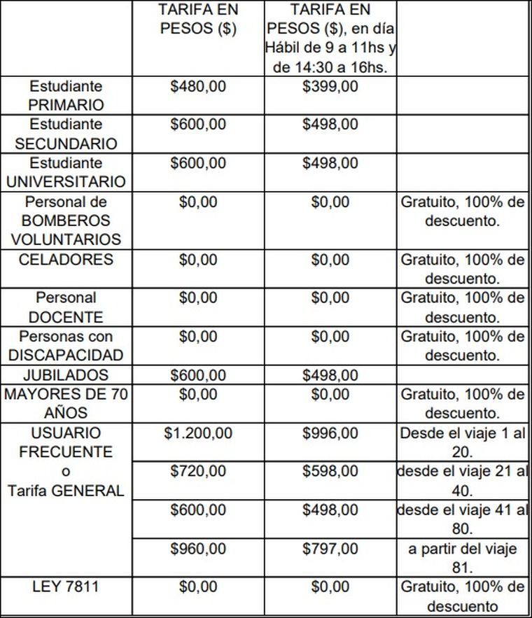 Las tarifas sociales y los beneficios gratuitos seguirán activos para estudiantes, docentes, celadores, bomberos voluntarios, personas con discapacidad y mayores de 70 años. En tanto, los jubilados abonarán una tarifa diferenciada de $600 desde noviembre y $700 desde enero.