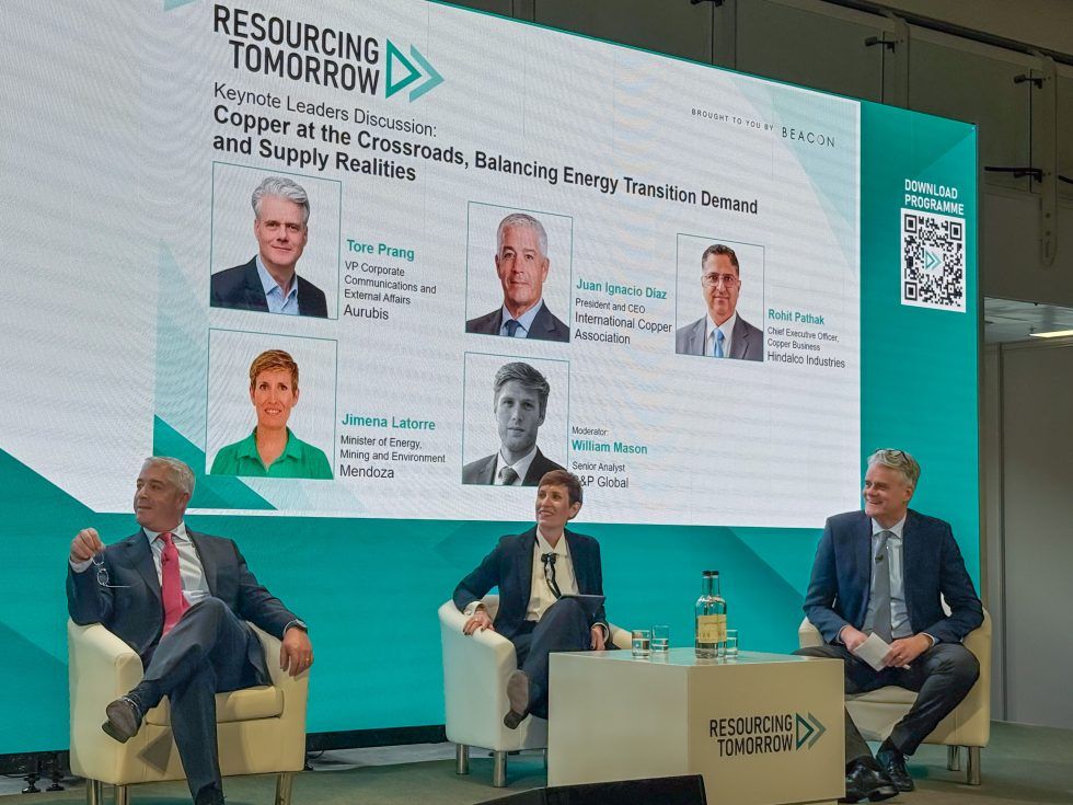 El panel, uno de los que mayor convocatoria tuvo en el inicio de la feria, contó también con la participación de Juan Ignacio Díaz (presidente y director ejecutivo de la International Copper Association), Rohit Pathak (director ejecutivo del negocio de cobre de Hindalco Industries), Tore Prang (VP de Comunicaciones Corporativas y Asuntos Externos de Aurubis) y William Mason (analista senior de S&P Global).