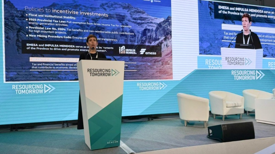 En el marco de Resourcing Tomorrow, la feria minera que reúne en Londres a expertos, inversores y profesionales de más de treinta países, la ministra de Energía y Ambiente, Jimena Latorre, presentó la visión estratégica de Mendoza para el desarrollo de una minería sostenible y su posicionamiento como futuro hub financiero de la región andina.