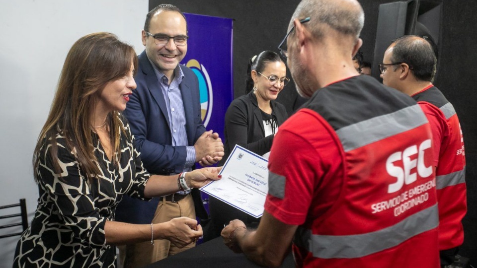 En el acto de entrega de certificados participaron la subsecretaria de Gestión de Salud, Carina Copparoni; el director de Seguridad Vial, Fabián Becerra; el director del Servicio de Emergencias Coordinado, Gabriel Mengual; el subdirector del Servicio de Emergencias Coordinado, Matías Donati, y la directora del Centro de Capacitación Vial, Gabriela Ziniscalchi.