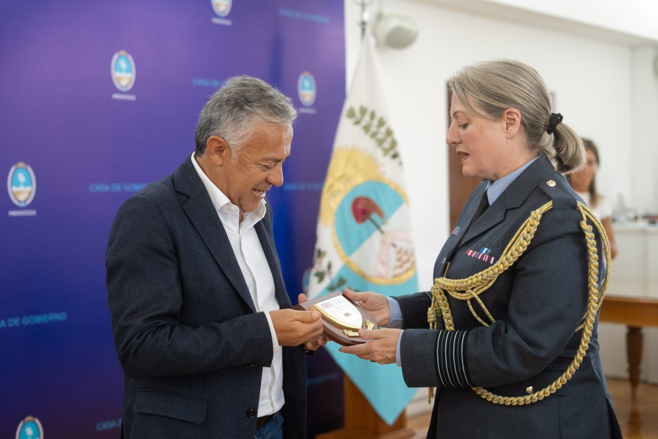 El Gobernador Alfredo Cornejo, acompañado por el subsecretario de Relaciones Institucionales de Mendoza, José María Videla Sáenz, recibió en la Casa de Gobierno a veteranos argentinos y británicos de la Guerra de Malvinas que participaron en el proyecto humanitario Aconcagua 2026 - Cumbre por la Paz. Se trata de una iniciativa que reunió a excombatientes de ambos países en una expedición conjunta al cerro Aconcagua, con el objetivo de transmitir un mensaje de paz, entendimiento y diálogo a la comunidad internacional.