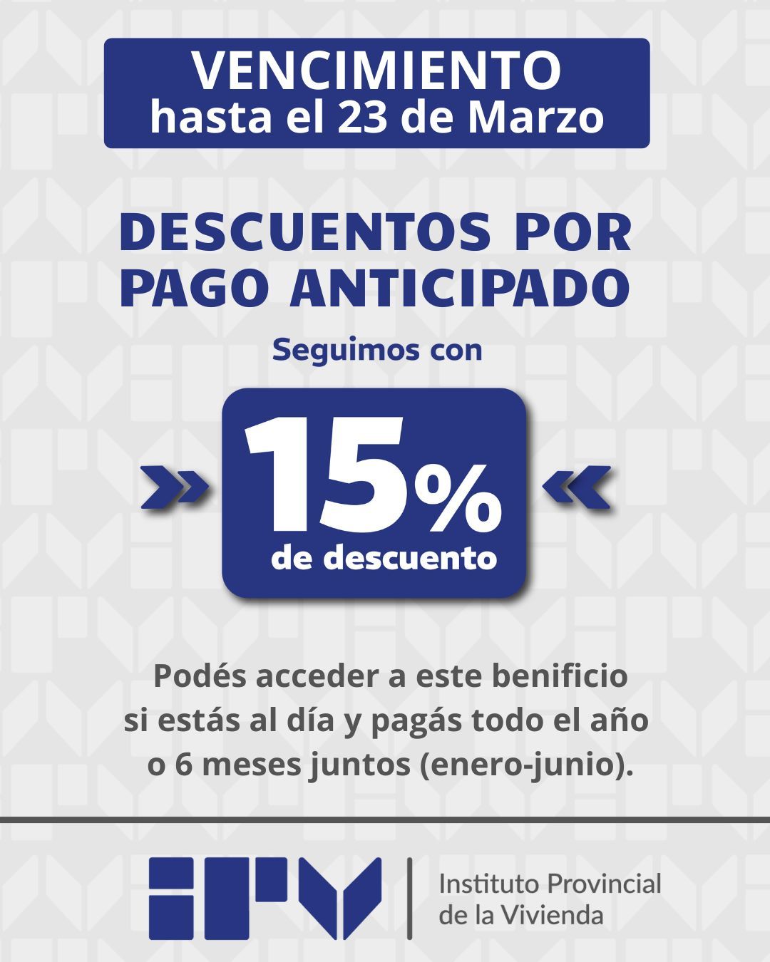 Como cada año, el Instituto Provincial de la Vivienda (IPV) pone a disposición este beneficio para quienes se encuentren al día con el pago de sus cuotas, incentivando el cumplimiento mediante descuentos por pago anticipado.
