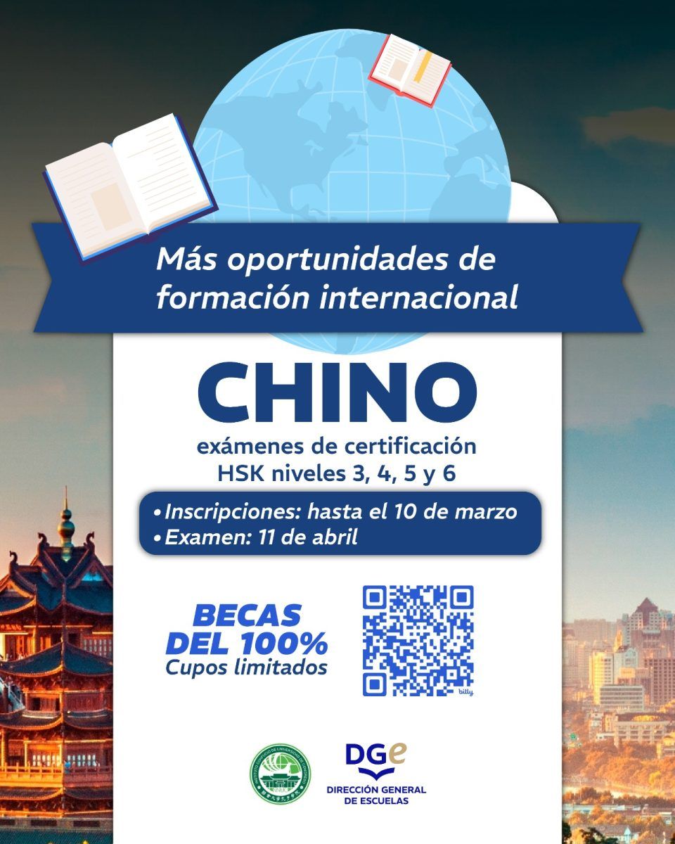 La Dirección General de Escuelas (DGE), en conjunto con el Instituto Confucio de la Universidad de Congreso, anuncia la apertura de inscripciones para los exámenes de certificación de idioma chino HSK niveles 3, 4, 5 y 6.