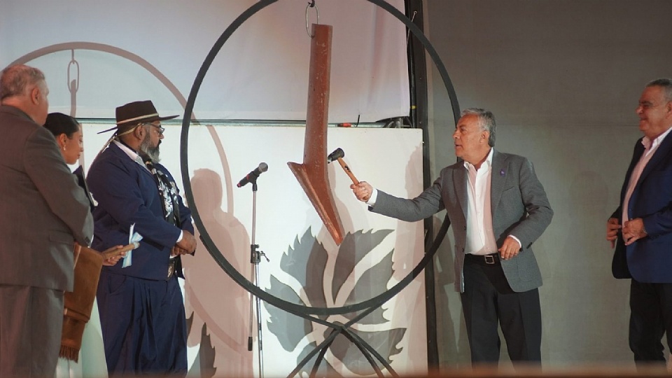Ya en el final, el Gobernador Alfredo Cornejo compartió el escenario para realizar los tres golpes de reja llamando a celebrar los frutos del trabajo de los mendocinos.