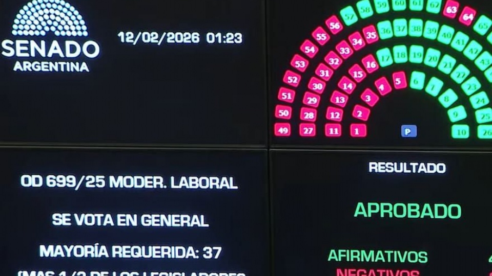 El proyecto impulsado por la Casa Rosada fue aprobado por 42 votos a favor y 30 en contra. Tras la aprobación el particular, el texto fue girado a la Cámara de Diputados para su tratamiento en revisión. Aunque parece difícil, el Gobierno pretende tenerla sancionada antes de la asamblea legislativa del 1 de marzo, cuando Javier Milei hablará ante ambas cámaras legislativas para inaugurar un nuevo período de sesiones ordinarias.