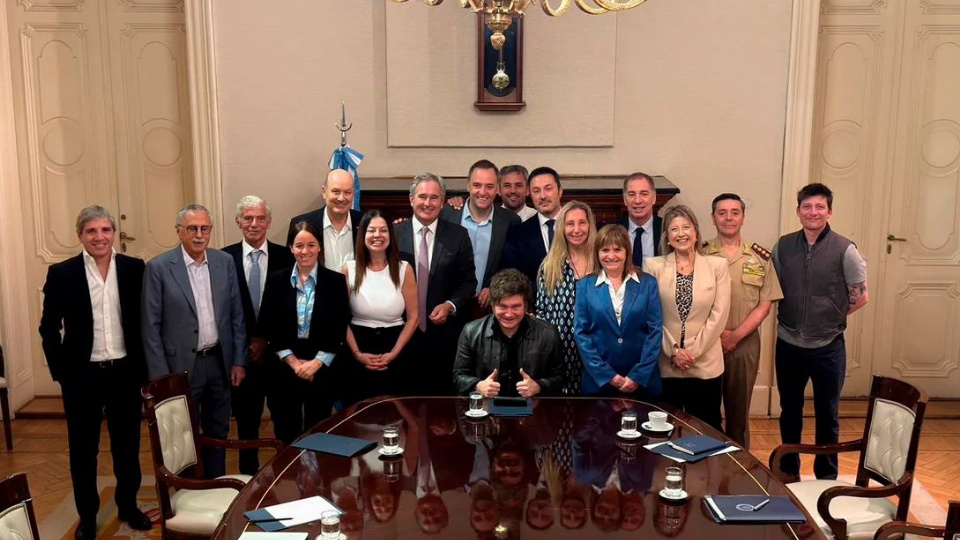 Participaron del encuentro los ministros Diego Santilli (Interior), Luis Caputo (Economía), Sandra Pettovello (Capital Humano), Pablo Quirno (Relaciones Exteriores), Alejandra Monteoliva (Seguridad), Carlos Presti (Defensa), Federico Sturzenegger (Desregulación y Transformación del Estado), Mariano Cúneo Libarona (Justicia) y Mario Lugones (Salud).