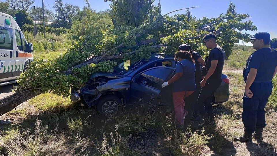 Este mediodía se registró un siniestro vial en el paraje Colonia López, de Villa Atuel. Por causas que se investigan, una mujer que conducía un vehículo Peugeot 408 perdió el control del rodado, salió de la calzada y colisionó contra un árbol ubicado al costado de la ruta.