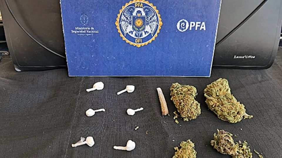 Durante el operativo, los efectivos identificaron a un hombre mayor de edad que portaba un pequeño bolso. Al inspeccionar sus pertenencias, el perro realizó una marcación positiva, lo que motivó una requisa más exhaustiva en presencia de testigos. En el interior del bolso se encontraron varios envoltorios con cocaína y marihuana.