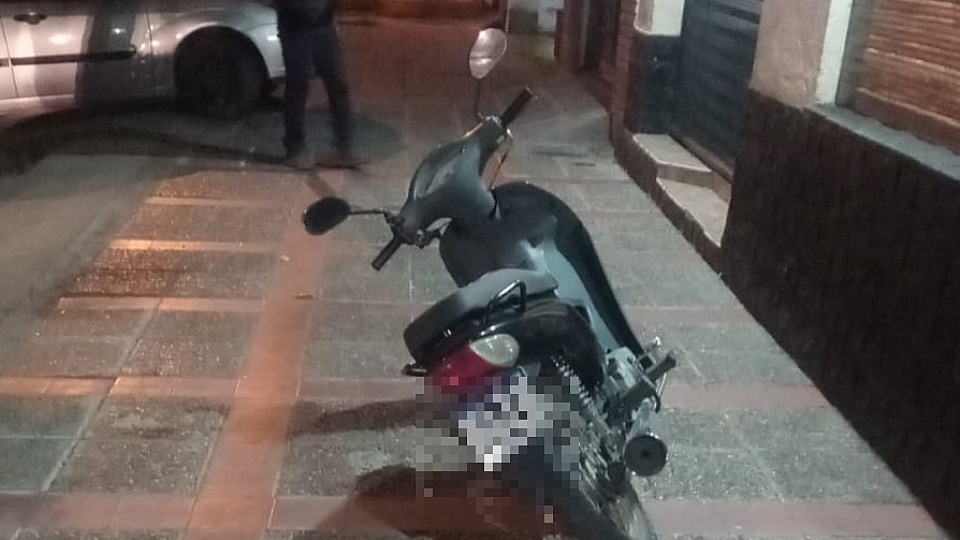 Al arribar al lugar, los uniformados observaron sobre la vereda Oeste una motocicleta marca Corven Energy que presentaba el tambor dañado y el carenado delantero forzado. En su interior había dos cascos.