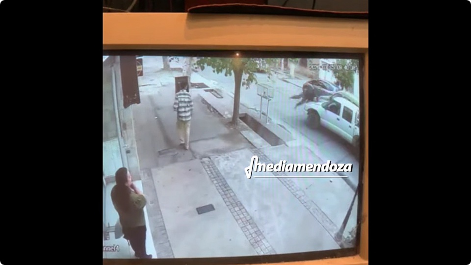 El hecho ocurrió cuando la víctima estacionó su utilitario Renault Kangoo y, al descender del vehículo, fue embestido por una camioneta Chevrolet conducida por otro hombre. El violento episodio quedó registrado por una cámara de seguridad de un comercio de la zona.