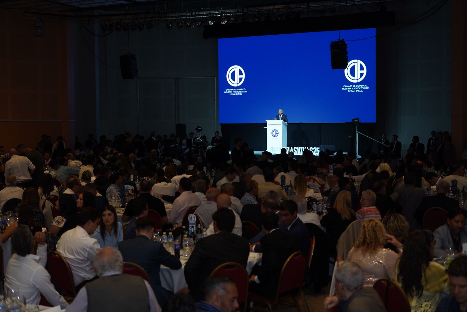 El gobernador Alfredo Cornejo participó del tradicional Almuerzo de las Fuerzas Vivas, organizado por la Cámara de Comercio, Industria y Agricultura de San Rafael. El encuentro contó con la presencia del Presidente de la Nación, Javier Milei, autoridades nacionales y provinciales, legisladores, intendentes, empresarios y representantes de instituciones intermedias del Sur mendocino.
