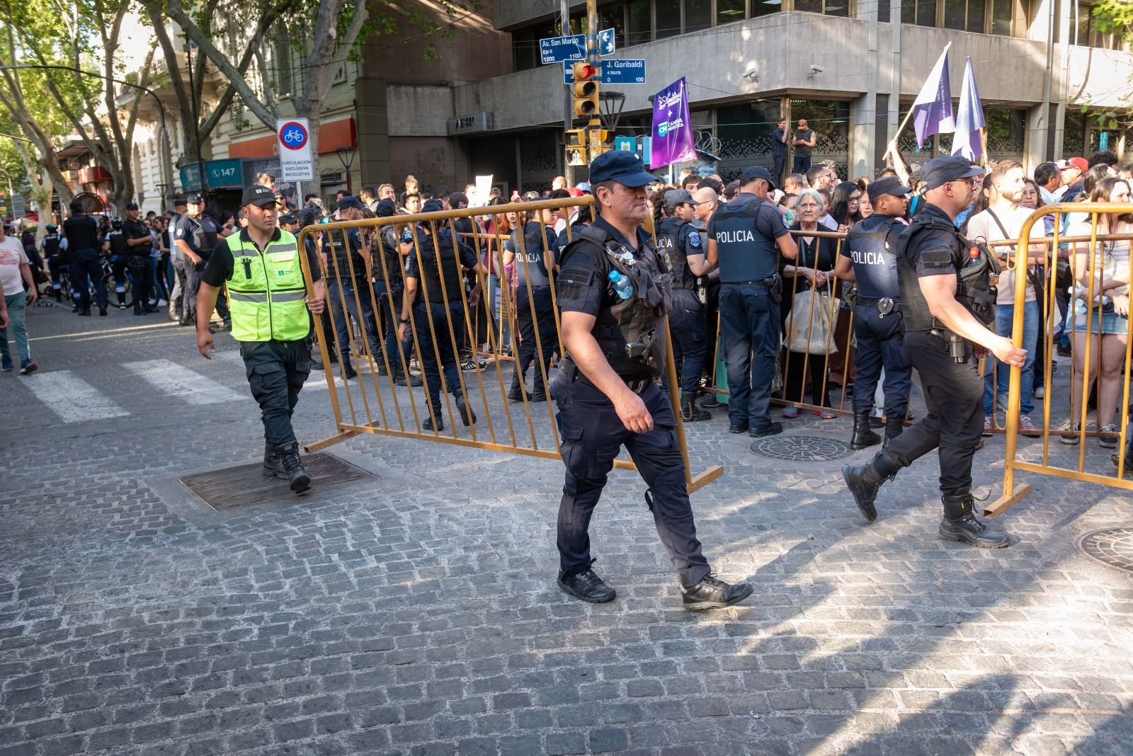 El dispositivo incluyó anillos de seguridad, control del tránsito y despeje de arterias para facilitar el desplazamiento de las comitivas oficiales. Además, un amplio despliegue en la Peatonal Sarmiento, donde se concentraron más de cinco mil personas durante la segunda actividad presidencial.