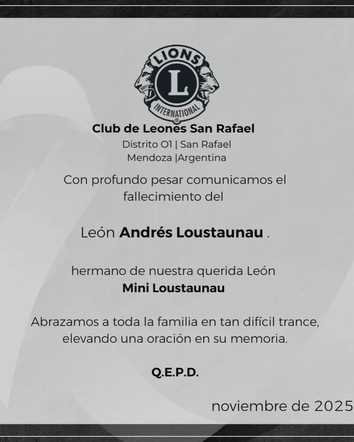 El Club de Leones de San Rafael informó este jueves el fallecimiento del empresario Andrés Loustaunau, de 53 años, quien formó parte activa de la institución y dejó una marca reconocida en su labor social.