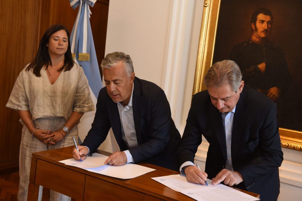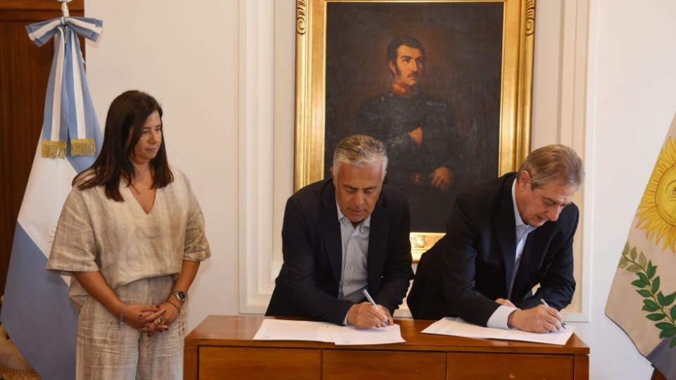 El Gobernador Alfredo Cornejo, la subsecretaria de Infraestructura y Desarrollo Territorial, Marité Badui y el intendente de San Rafael, Omar Félix, firmaron tres convenios que permitirán llevar adelante obras clave para el desarrollo del departamento del Sur. Se trata de financiamiento que se otorga a través del Programa de Infraestructura Municipal (PIM), en este caso, para brindar servicios de agua potable y energía por un total de $575.767.325,4 millones.